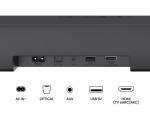 Fizičke karakteristike: | | Boja: Crna Dimenzije: 903mm x 91mm x 60mm Masa: 5.8kg Pakovanje: 2x AAA baterije, 3.5 mm AUX in-RCA kabl, Dodatak za kačenje na zid, HDMI kabl |